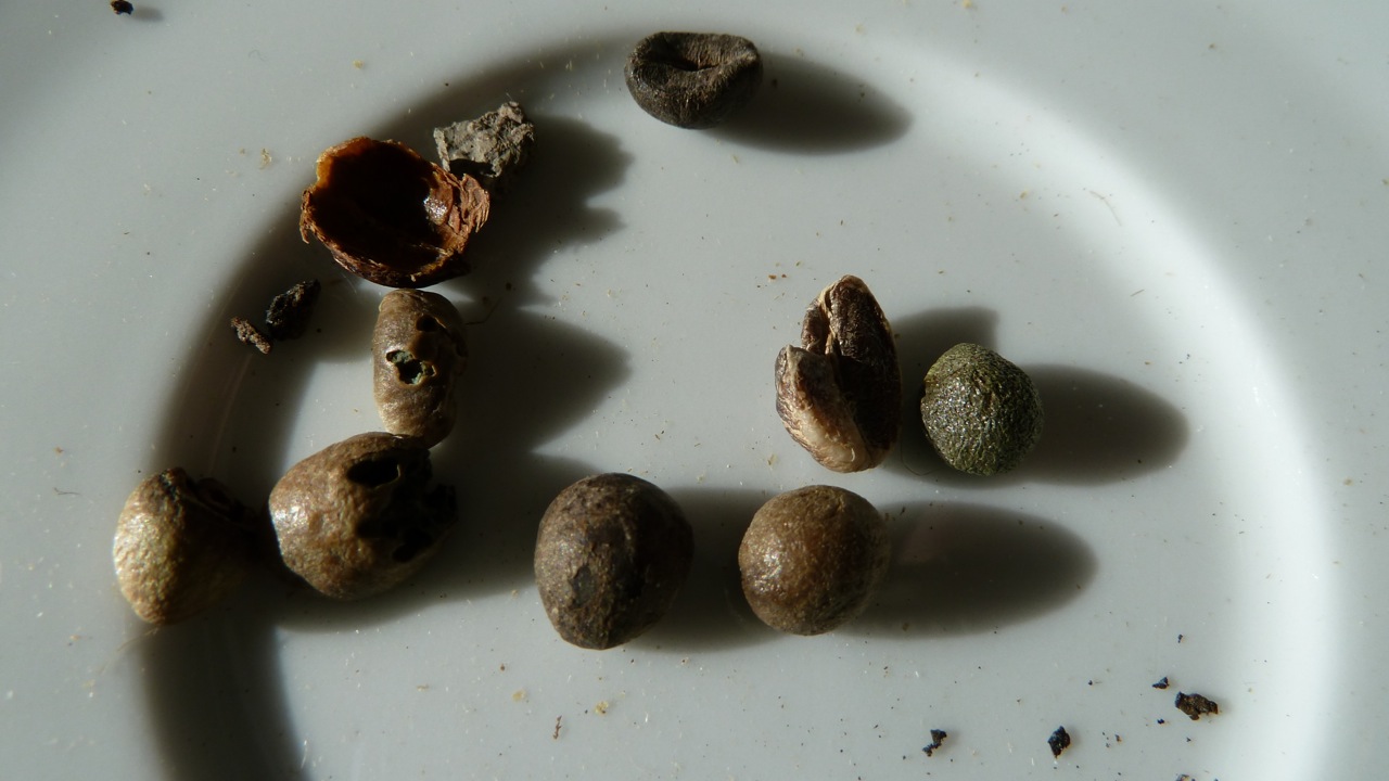 Put about the amount of beans in the pot that they just cover the surface once. Do not fill in too much. At the beginning you need to find the right temperature. The overall roasting process should not be less than 20 minutes. For me it´s is “7” on my plate. So start not with full power, give the beans some time. Above you see the beans after 10 minutes. After 5 minutes you should see the first smoke coming out of the pot. They look a bit like peanuts now.