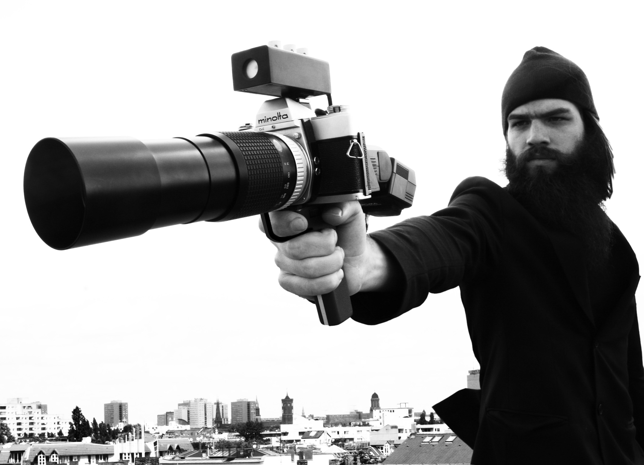 Another great invention is his Fulgurator, a camera who projects images via a flash trough its lens in response of other flashs. This results in the desired image is shown on the images of the photographer “who flashed” to take a picture. Hard to explain and understand but watch his youtube video to understand the witty apparatus.