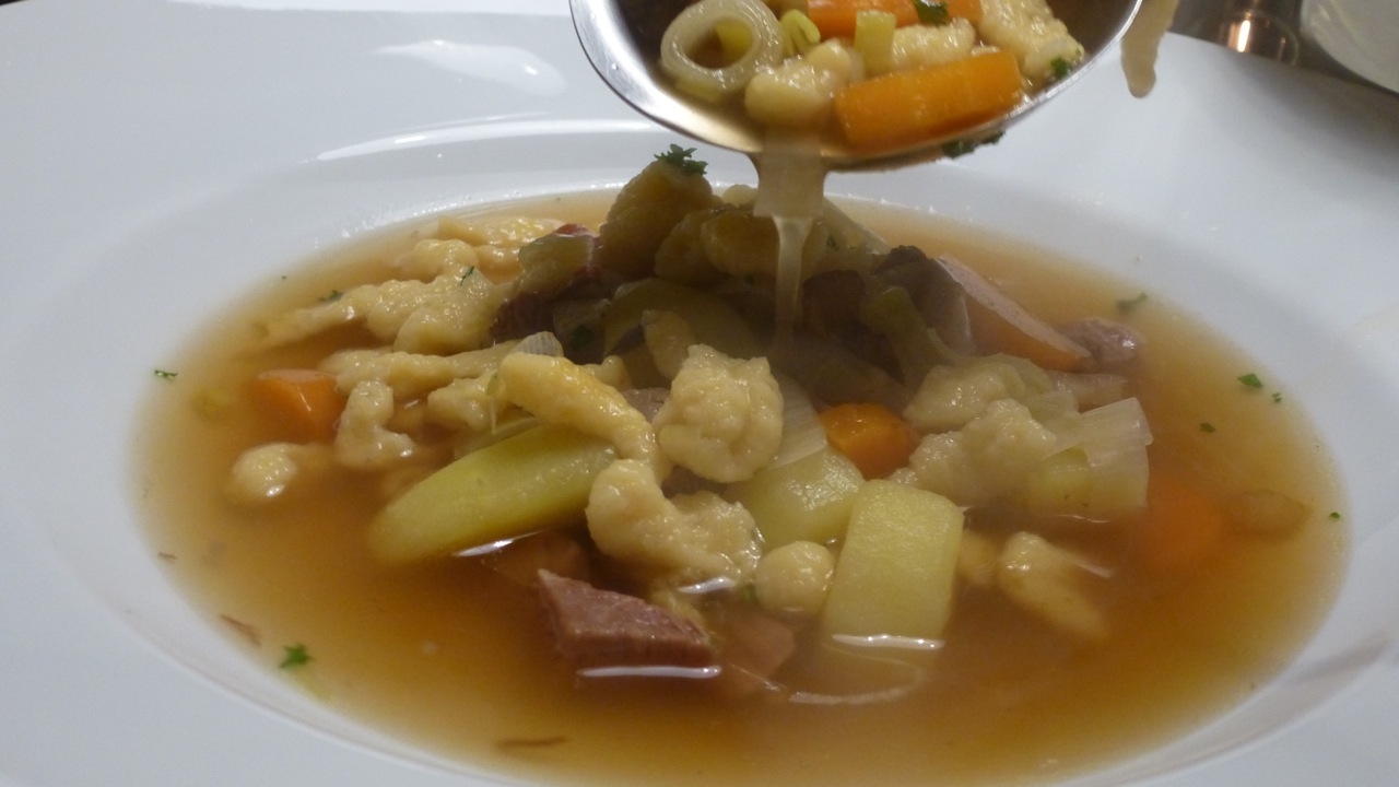 One explanation for the name Gaisburger Marsch is that the dish was so popular in the 19th century among officer candidates that they marched all the way to Gaisburg where their favorite dish was served in the restaurant called Bäckerschmide. Another version claims that locals from Gaisburg became prisoners of war and their women were only allowed to bring them one meal every day, so they created this nourishing dish and marched with it to the camp.”
