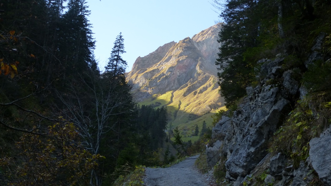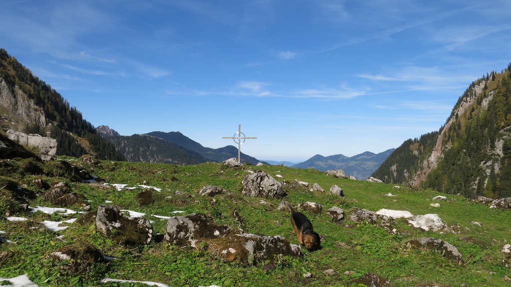 After a feast with friends on some excellent roasted ducks at Gasthof Traube plus dessert it was a must to vaporize the calories the other day. One hour from home, after Schoppernauwe went straight to the Biberacher Hütte and continued the path in a superb mountain panorama to SchröckenUnfortunately no cake since off season has already started. The weather was outstanding, no autumn at all.