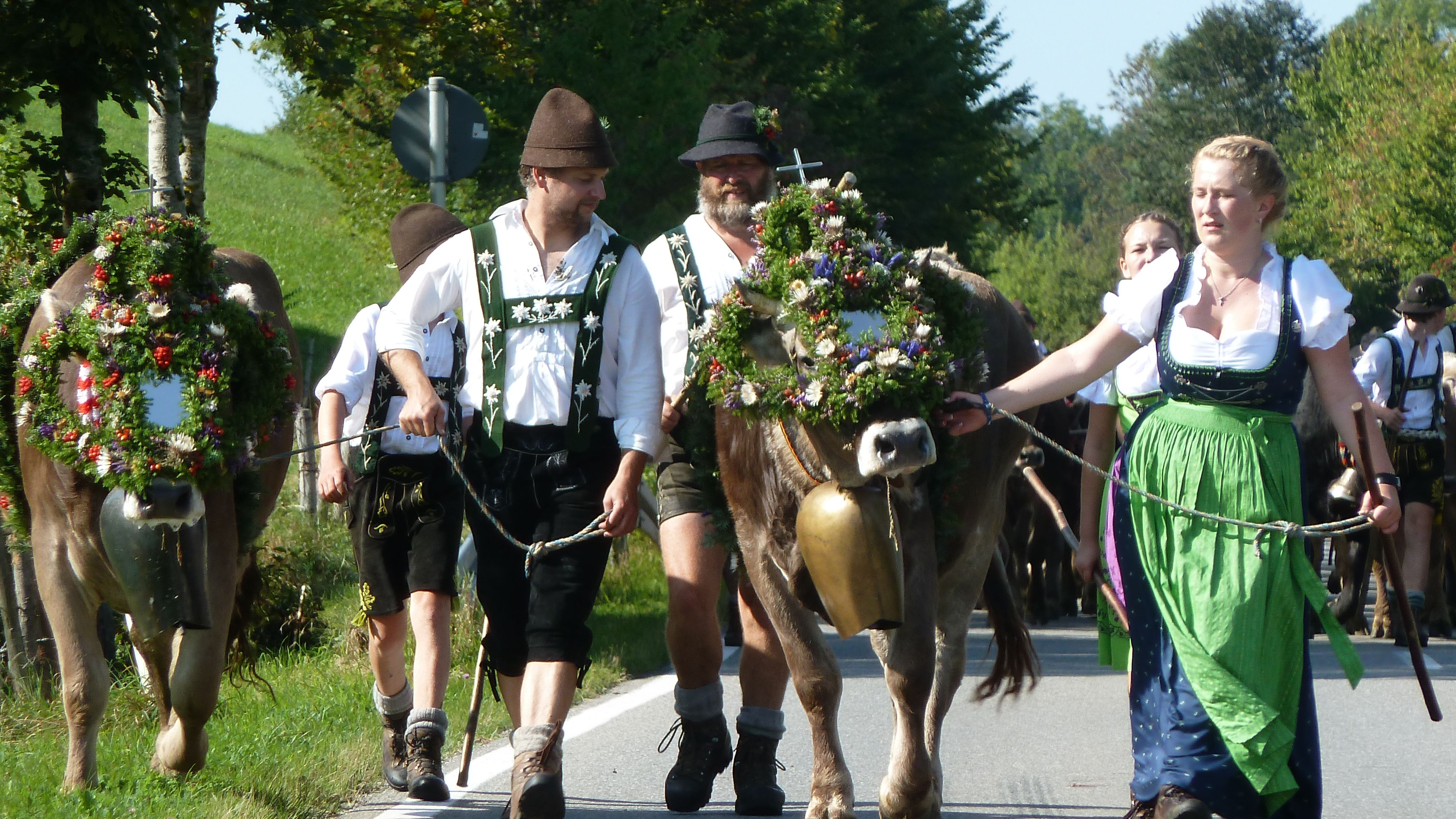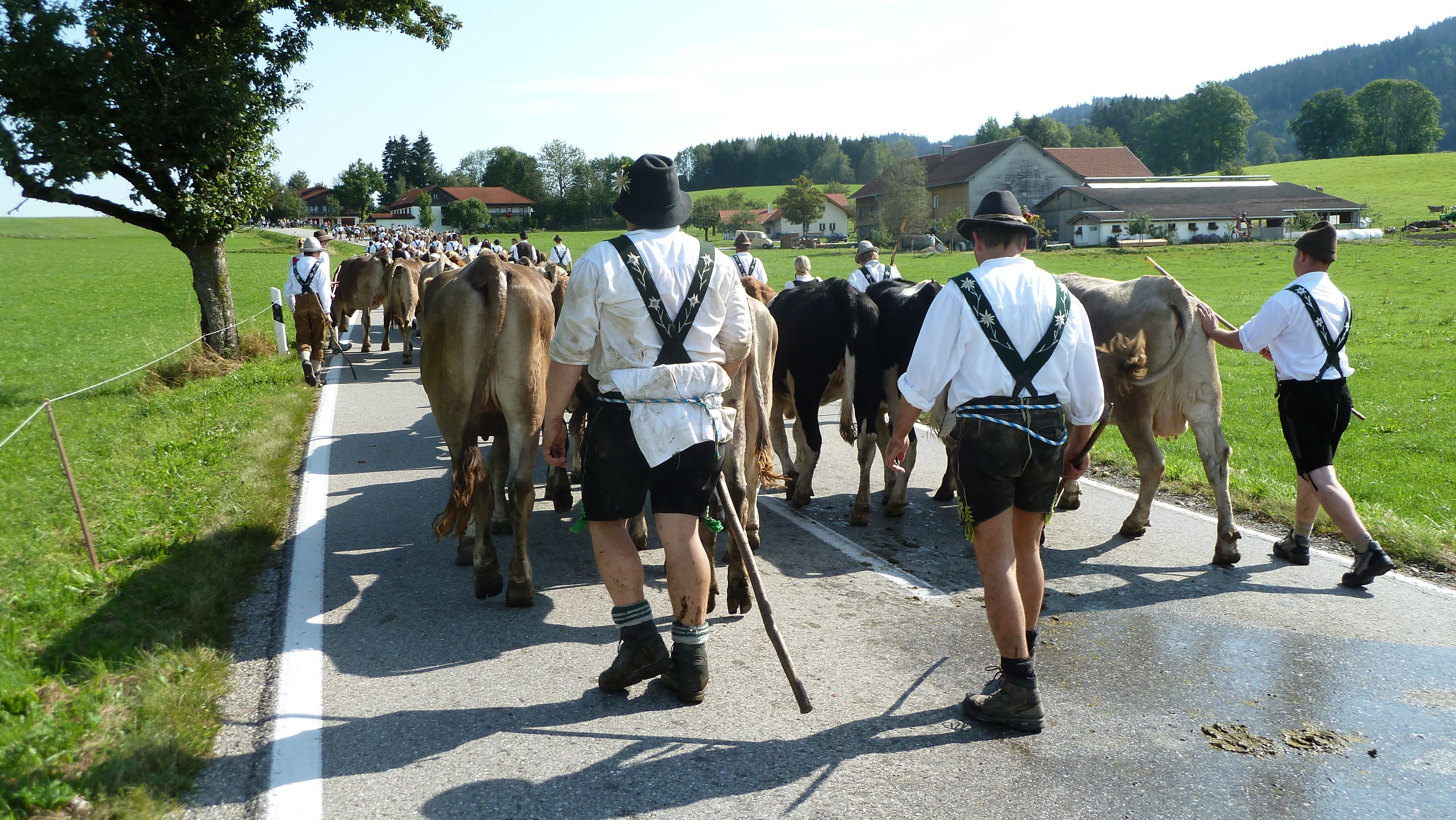 Viehscheid-Maierhöfen 2011, the cow train arrivesViehscheid-Maierhöfen 2011 one of the "cowboys" with a great beardViehscheid-Maierhoefen the cow train arrives and comes closerViehscheid-Maierhöfen nice dirndl going barfootCheck out the girl going barefoot