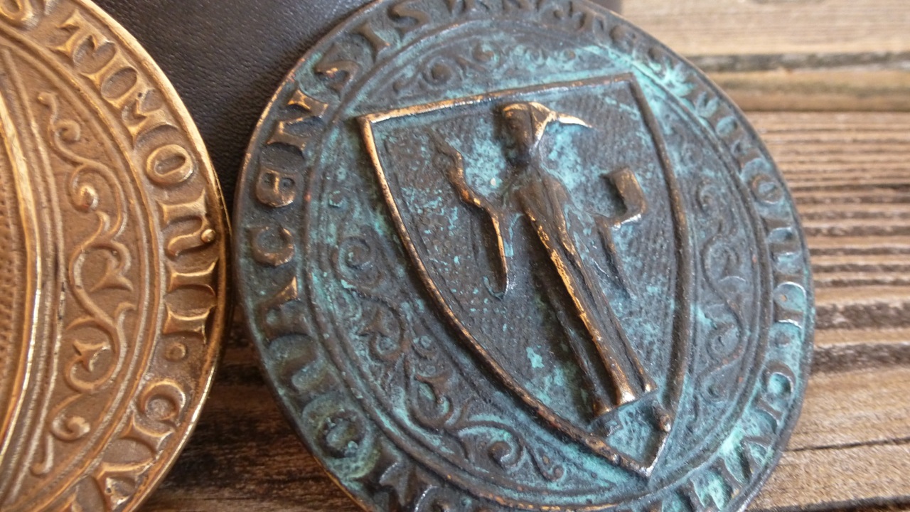Yesterday Manfred from Feinschmuck gave me this belt buckle made after a 13th. century coat of arms (Stadtwappen / Stadtsiegel) from the city of Munich.