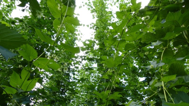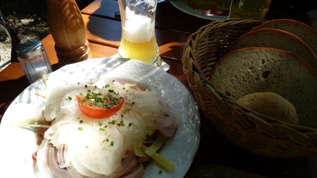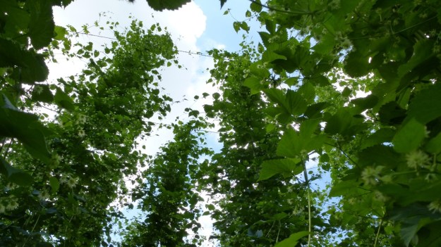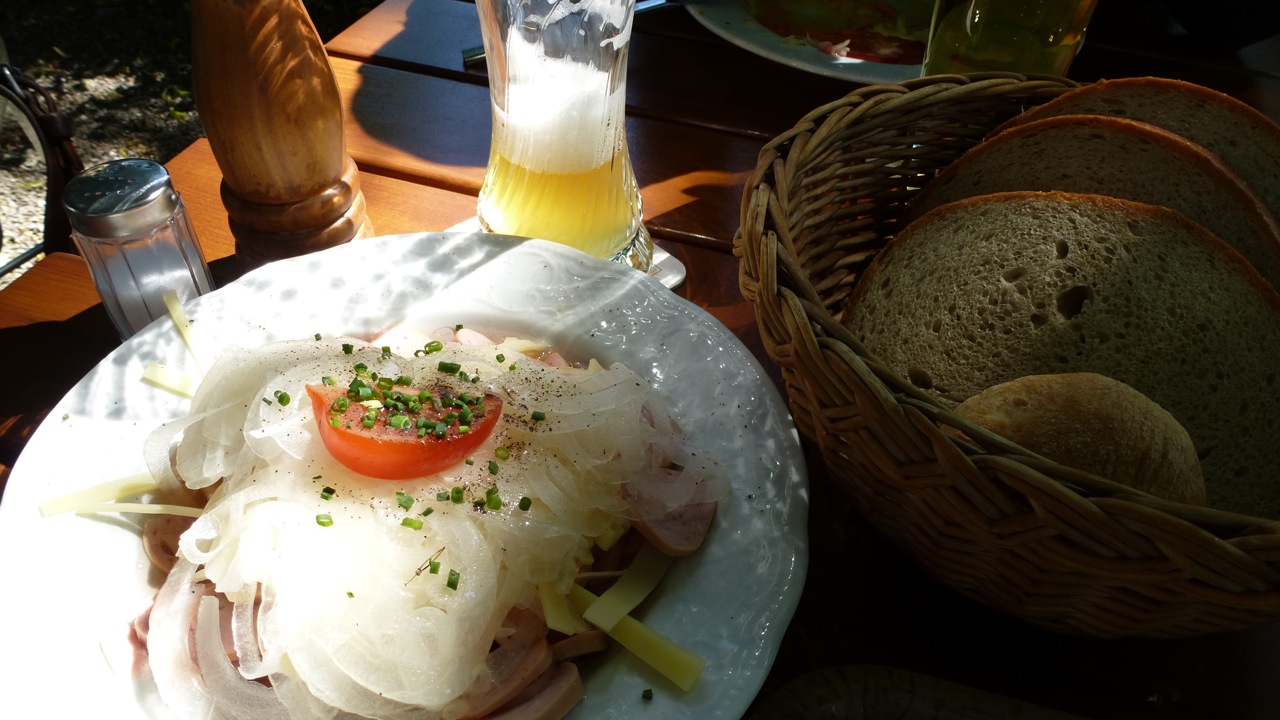We finally hauled ourself onto the bikes and cycled to our favorite Biergarten. I did not take the normal route and showed Maria some new highlights around there. An old ruin of a castle and pond in the forrest. On the way there I also took some images of the heap climbing up the wires. When we finally arrived at the Biergarten we had a cold beer, a Schweizer Wurstsalat and a plumcake with cream for desert. Great afternoon outdoors, not an adventure in the close by mountains but we made the best out of a lazy sunday.