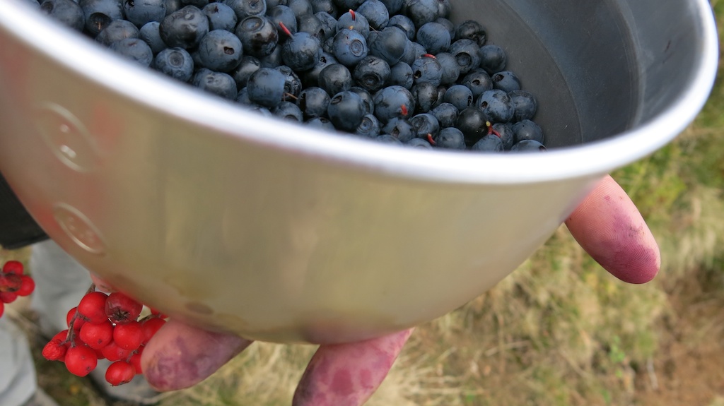 Unintentionally the Trangia frying pan served as a water cup for Tillmann and the 2 pots for collecting blueberries.