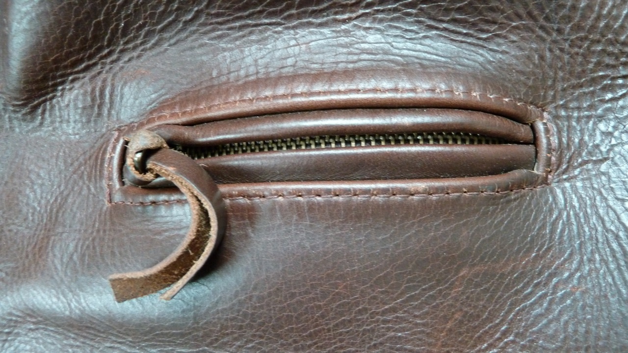 If you wonder why the jacket has no cord or chain for hanging it on a hook. No way! The weight of the jacket would deform the jacket, just throw it on the floor, thats it. I will post more images over the time to trace the changes.