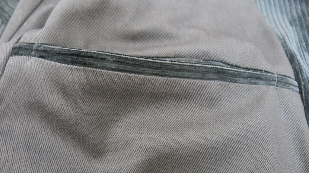 Said that it´s is logic that those guys wont travel with an improper wardrobe. FHB´s aim is to provide those craftsmen with a sturdy, high quality wardrobe so they can fulfill their job and journey. A really tough Corduroy is the basic of their products. Lined with a strong canvas and tough buttons. There is no fault spottable in the construction. Another fine detail is the “Z” like sewn on buttons which stands for “Zunft”, a registered trademark of FHB. The more traditional two row jacket/sakko has 6 buttons who stand for the workdays and the vest/waistcoat underneath got 8 buttons for the work hours on every day.