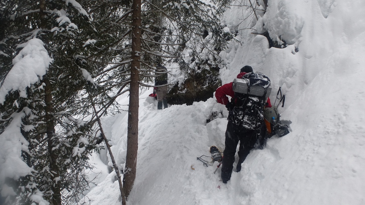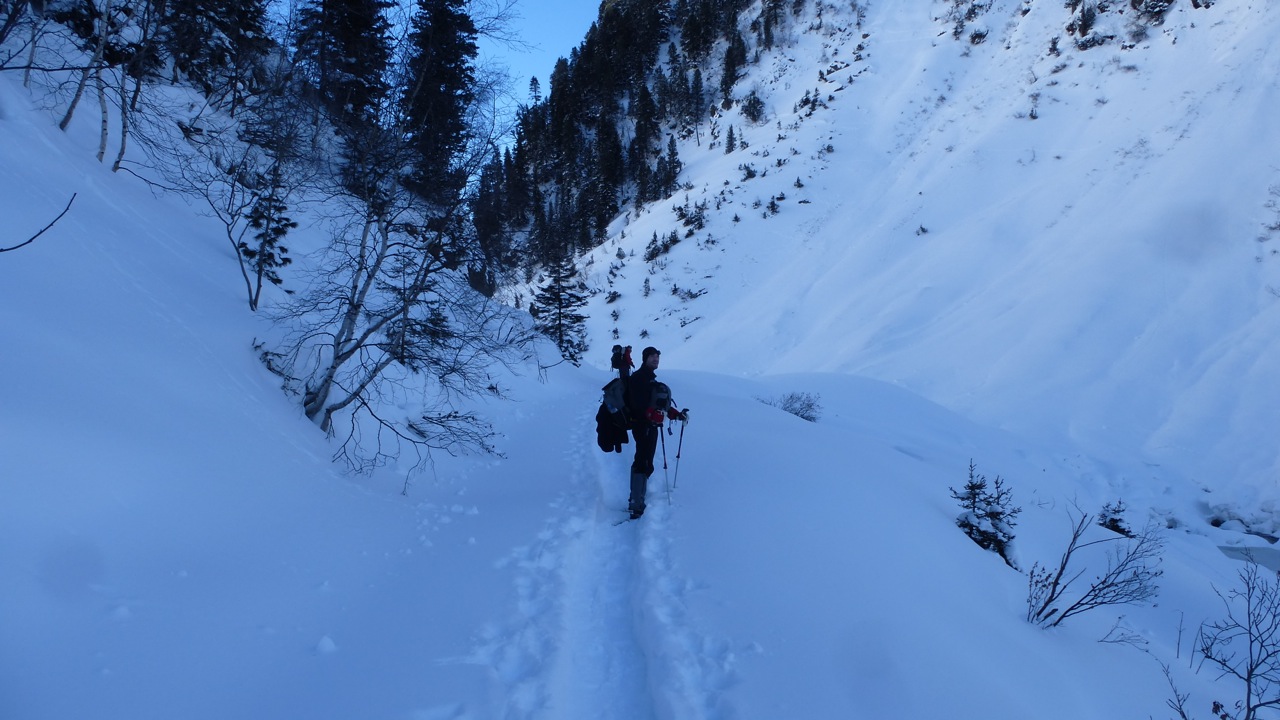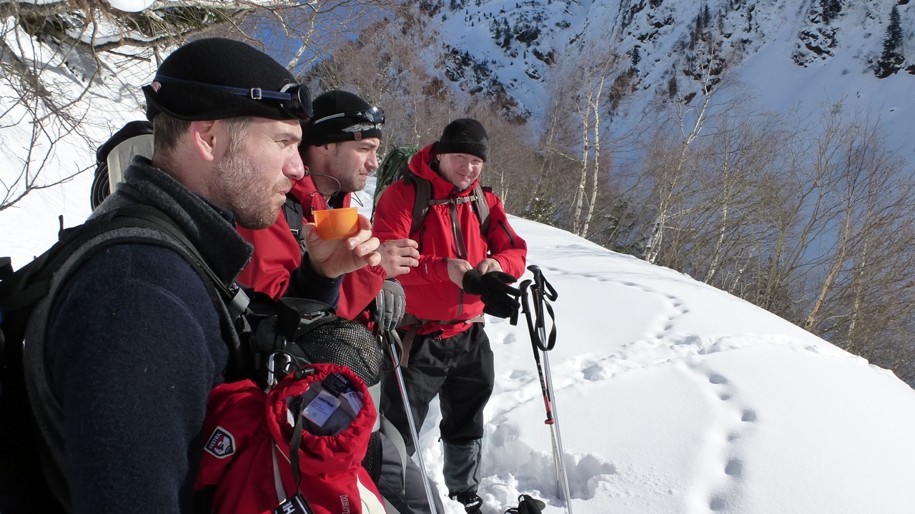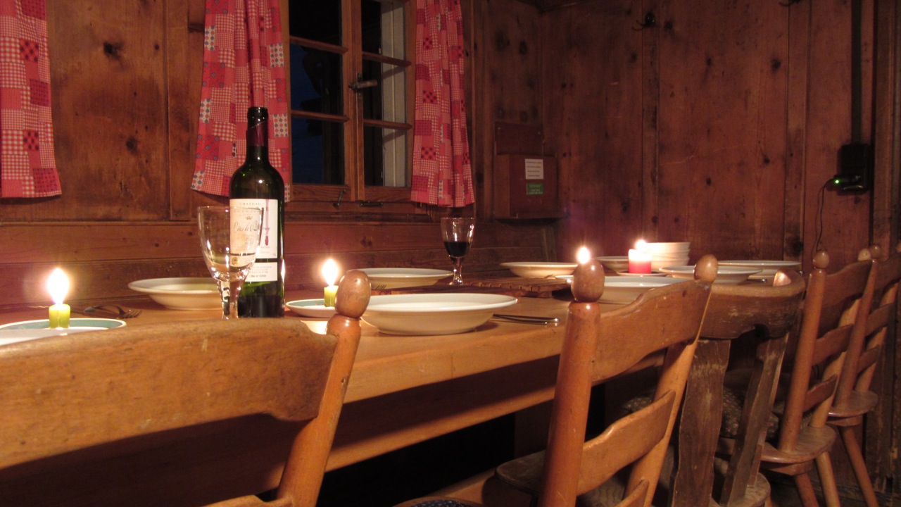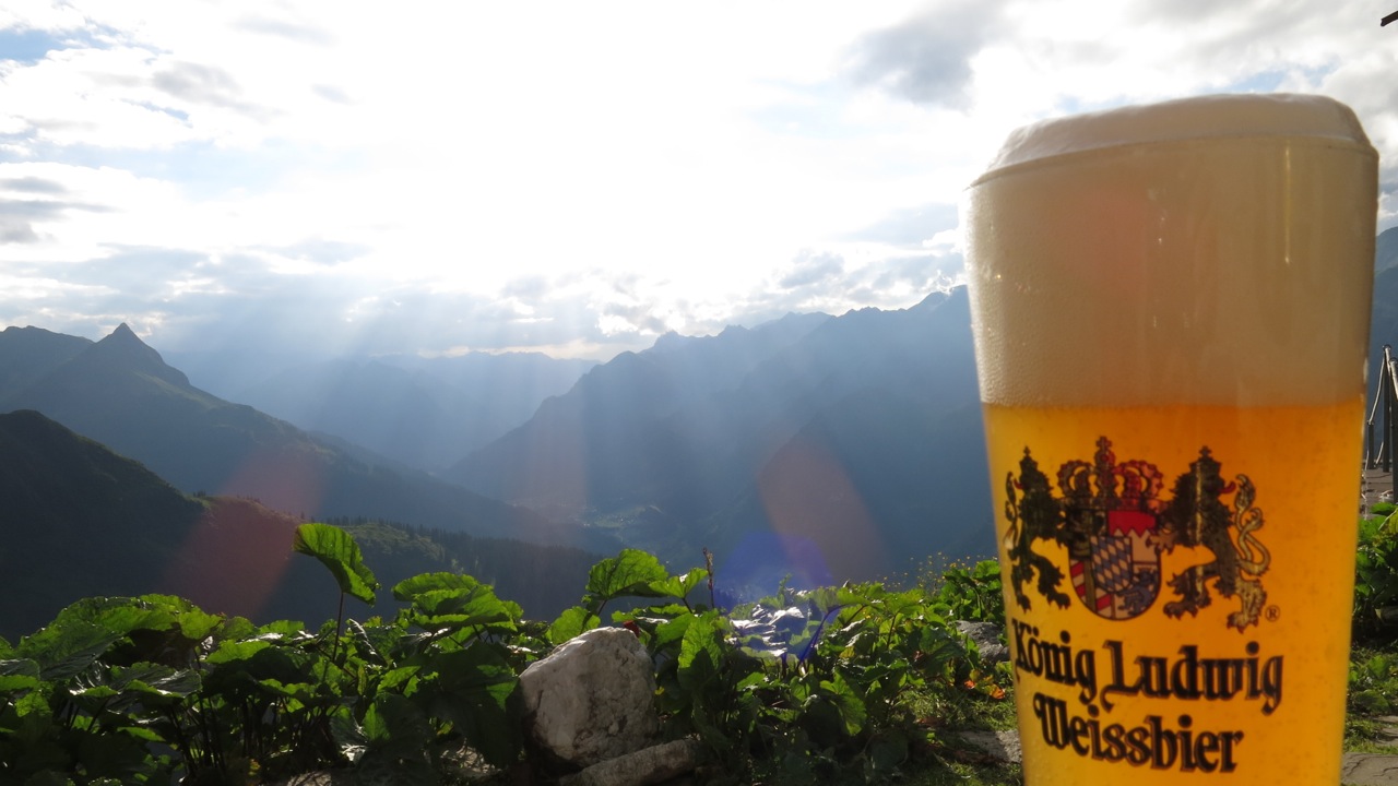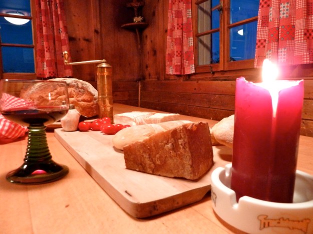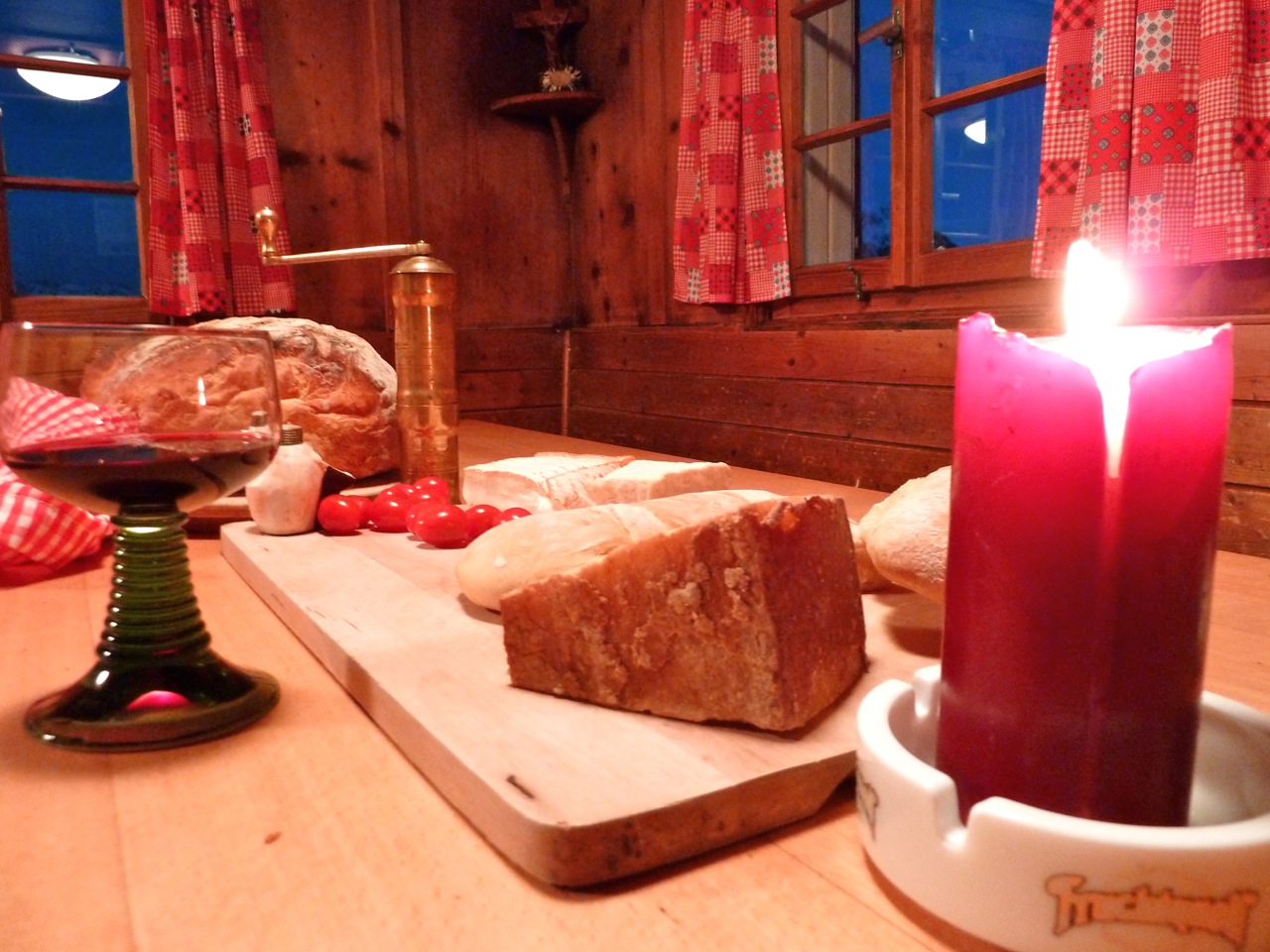We probably caught one of the last weekends for our bivouac in the alps. Probably a week to late, the yellow leaves already dropped down. After about close to 3 hours we reached the summit and our campground. On the way up there I spotted a badly wounded tree which blood/resin I took as a fire starter. Two years ago I collected some wood and leaned it to a tree, it was still there so the fire was started really quick. We barbecued some Frankfurter/Kraken and had a good bottle of red wine.
