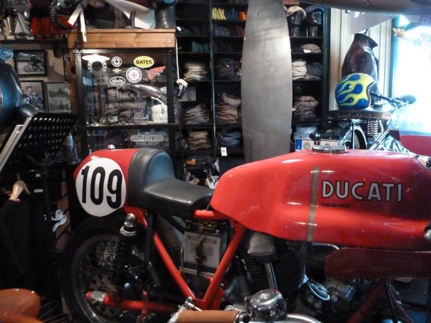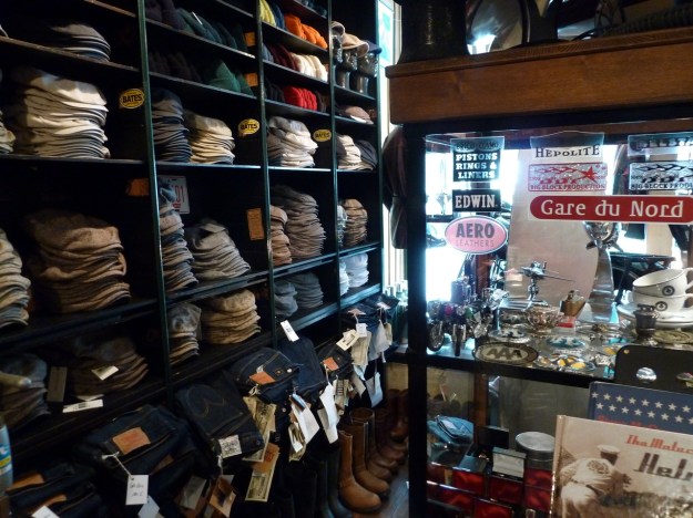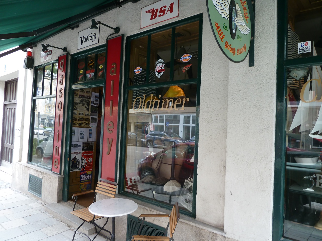 Gasoline Alley München / Munich a true shop for dudes by Burghardt Pflug. A must see if you are in Munich. The few photos I shot are only a glimpse of the treasures he has hoarded in his shop. And they are even for sale. The collection of old and new leather jackets and red wings are in the back of the shop and are not shown here.