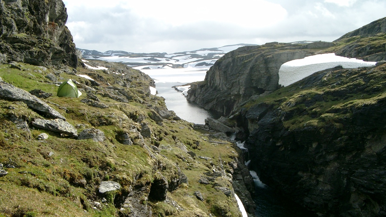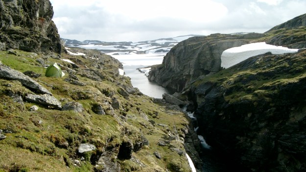 While trekking in Norway, after I setup my Tent (Vaude Hogan) I found this nice preserved can of fish under a rock. I liked the aged look of it and took it as a souvenir. Who was this hiker who hide it there years ago? After he had his meal on a a long day hike on this wonderful spot. It´s close to the Harteigen the biggest mountain of the Hardangervidda close to Torehytten. On the one side you can look down the valley on the other side you see the lake. The water is refreshing but when you wash your feet are close to be numb before you washed yourself. Hard to find a nicer spot for camping If you ask me, quite mystic.