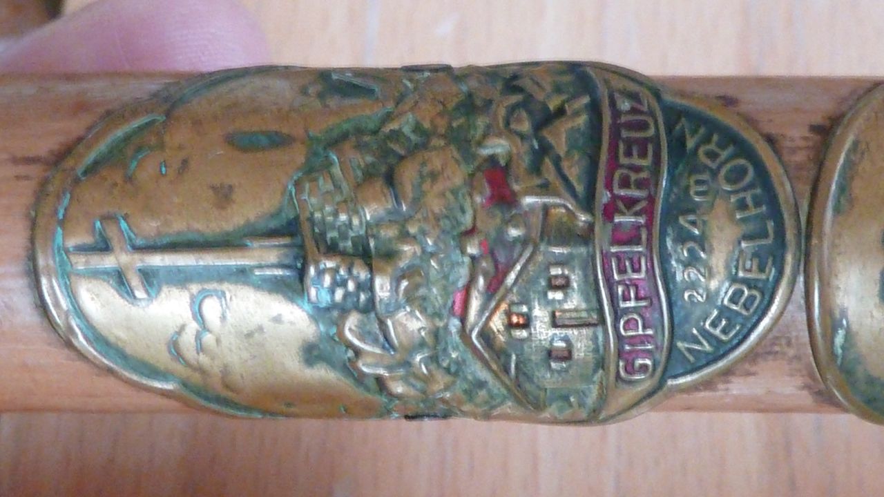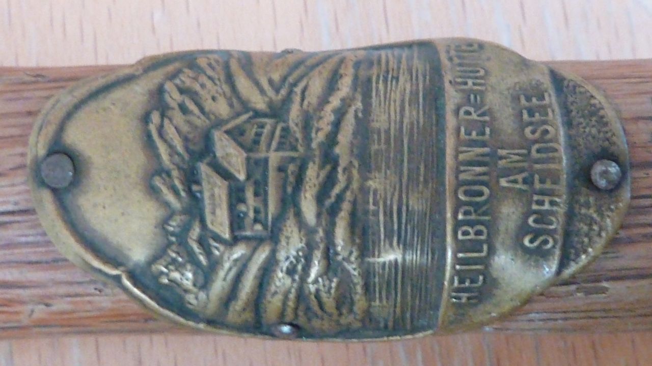Today in my favorite antique shop I came over 5 old – vintage hiking sticks with stick nails – stocknägel. I could not find the word for a stocknagel in english. To explain it, a stocknagel is a souvenir you nail on your walking or hiking stick from a place of interest – mostly in the mountains. Its a tradition in europe and also a collectable or souvinir of where you have been. Its also a motivation for kids to collect them and some go mad about getting their sticks full. By that they learn to enjoy hiking and climb mountains by play.