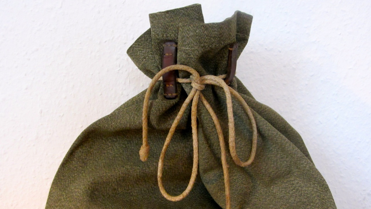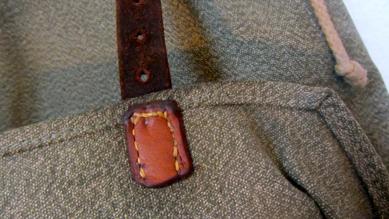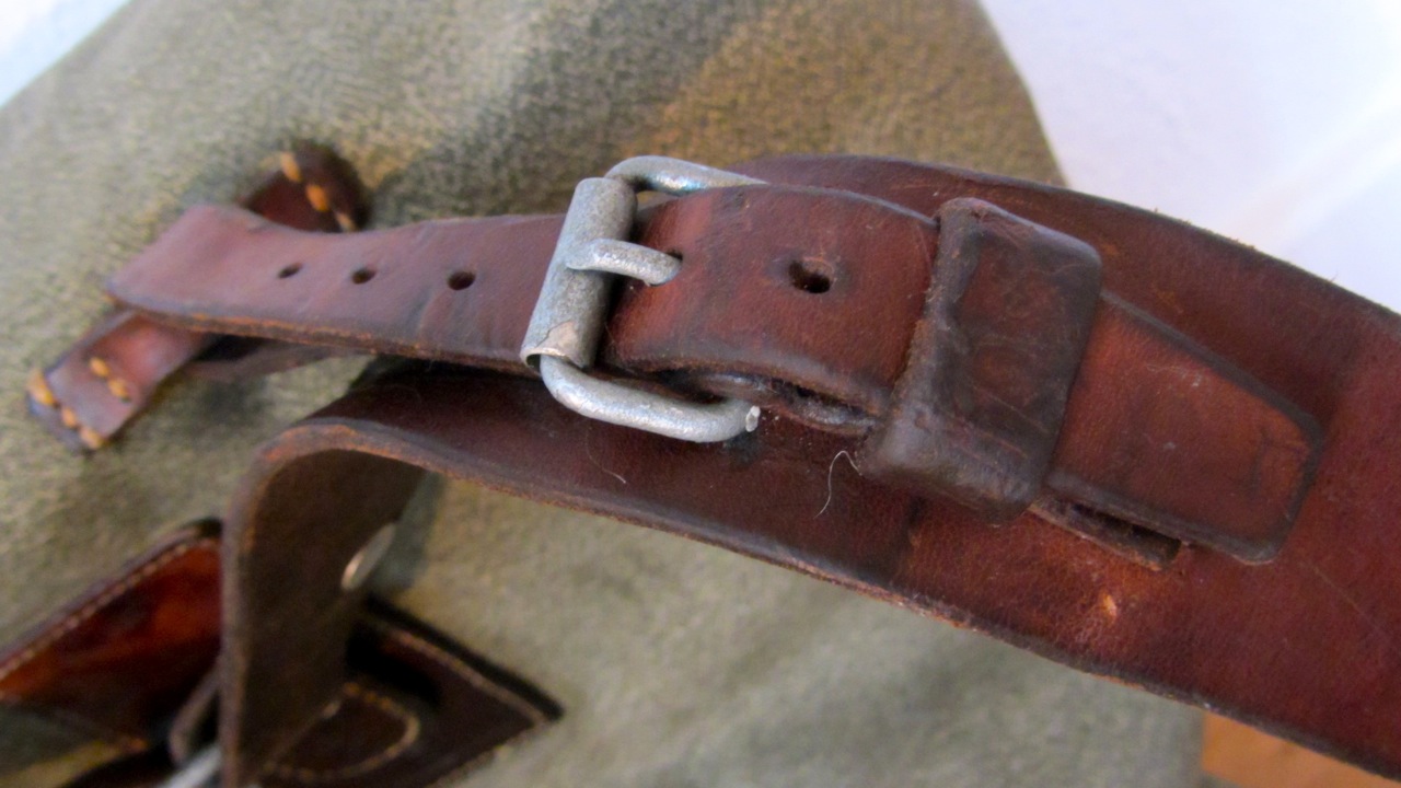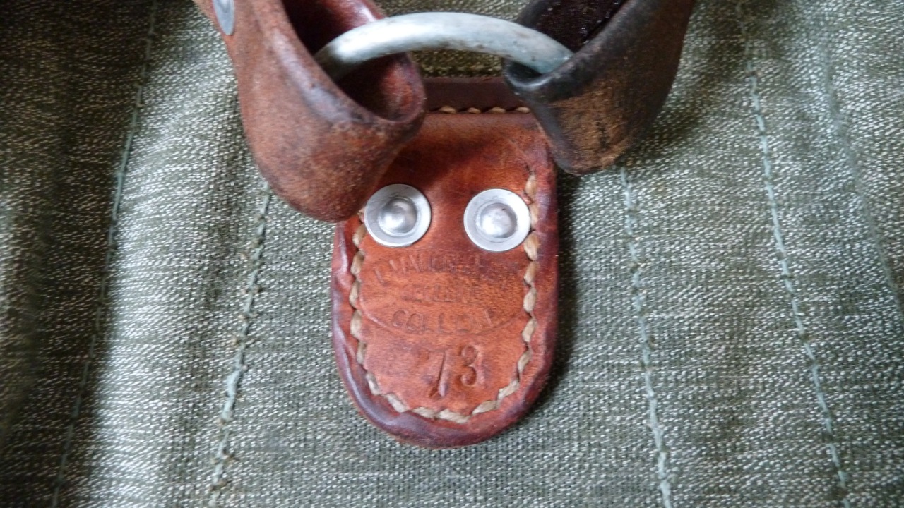As promised I took some images of the smaller or lighter Swiss army salt and pepper backpack from 1963 made by A. Mosimann. As you can see it lacks the stronger and reinforced carrying system and the closing flap with the leather buckles. This makes it about 2 kg lighter and a lot slimmer when not filled. The materials have the same strength and the reinforcements of the stitches are pretty much the same. Absolute superb craftsmanship I have to say, not one single weakness I could find on the construction of the backpack. All buckles or leather parts have got reinforcements on the other side of the canvas. The canvas itself is very strong but does not tend to break. I guess if you treat it with some wax it will be waterproof like a barbour jacket.