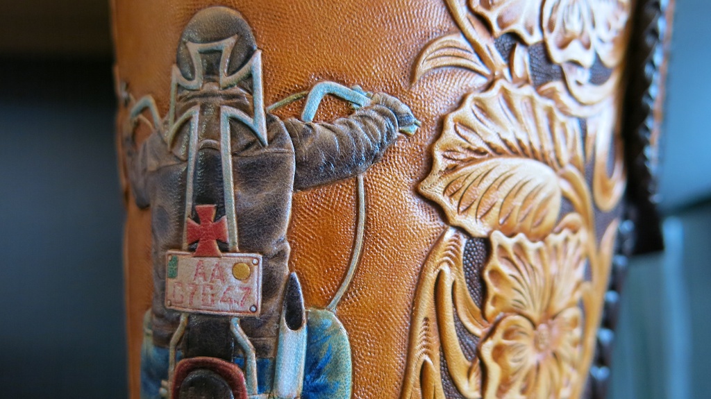 She spent a day with me and Tillmann to capture me working (an Tillmann waiting to finally going to play Frisbee) on various products eg. a Clutch Bag, a Tote Bag, a Belt and a leather covered Flask. Im very happy with the results and for sure this will not be the last time we work with Mia and Goldenfox.
